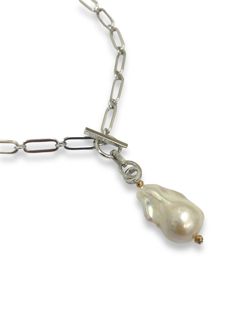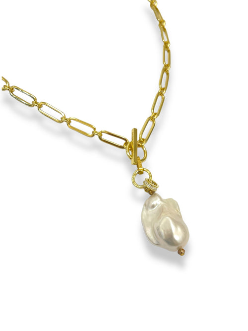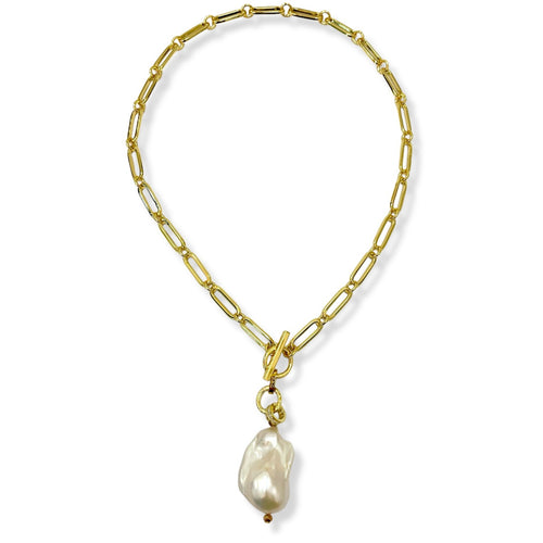 Size: 1" Length Baroque Pearl / 17" Large Paperclip Toggle Chain