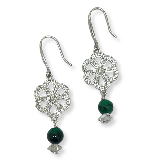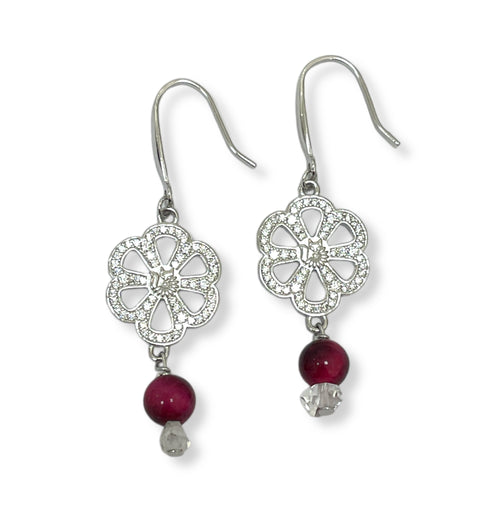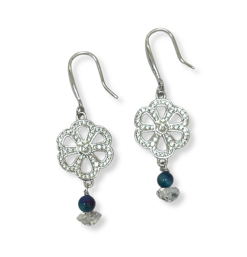 Pendiente Micro Rueda De La Fortuna De Plata De Ley Con Diamante Herkimer