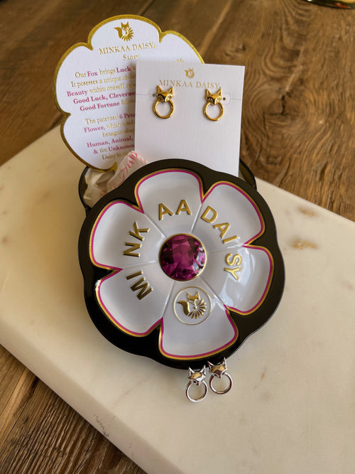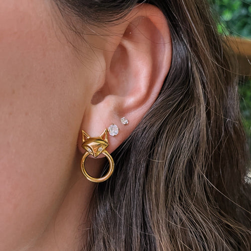 Pendientes de aro de zorro con ojos de cristal de plata esterlina