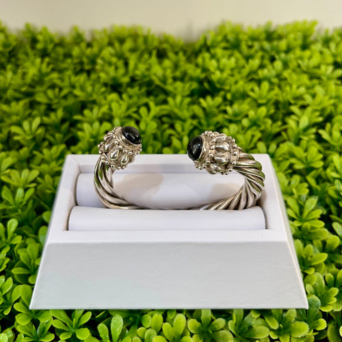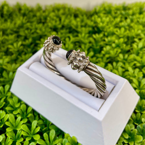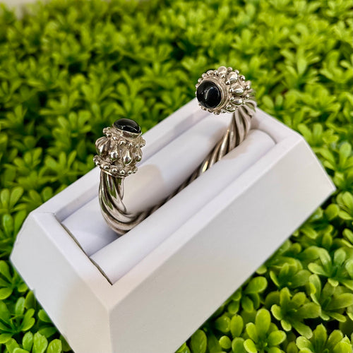 Vintage Sterling Silver Thick Twisted Rope Bangle with Black Onyx